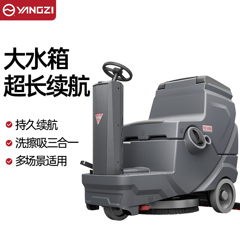 揚子洗地機YZ-X68,一機多用洗拖刷吸一機搞定,洗刷吸擦四合一/大容量雙水箱/三電機驅(qū)動/美特膠條/品牌電池/雙層降噪隔音
